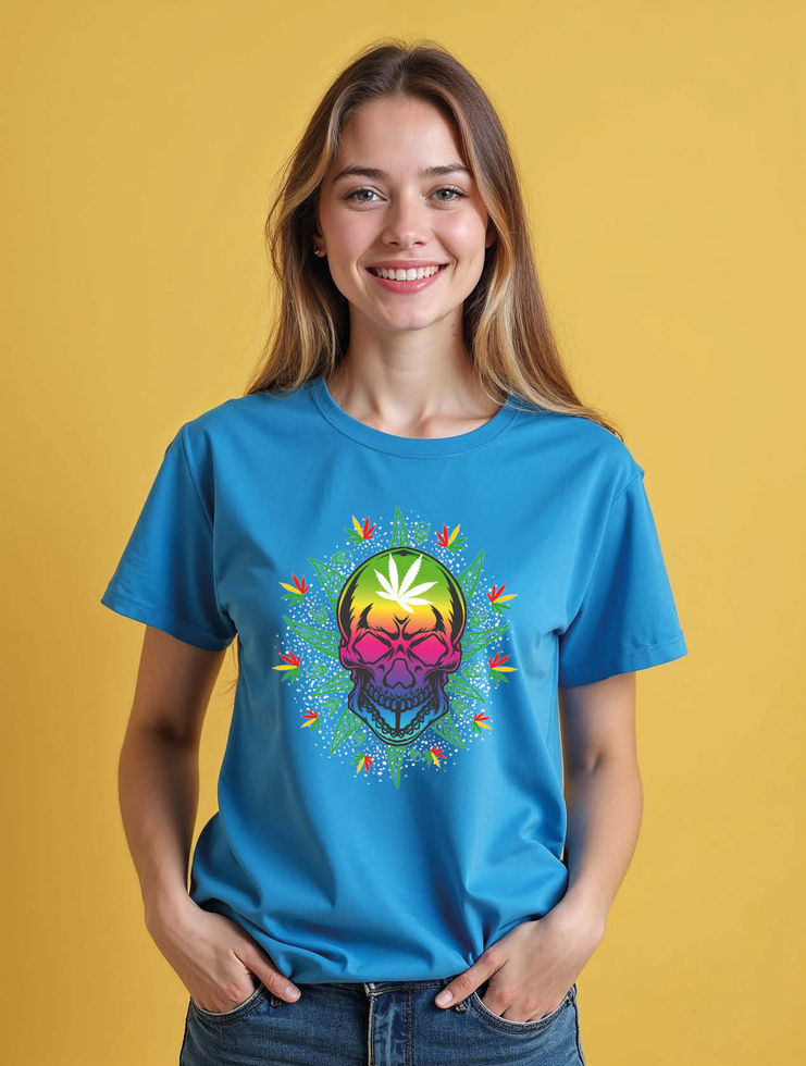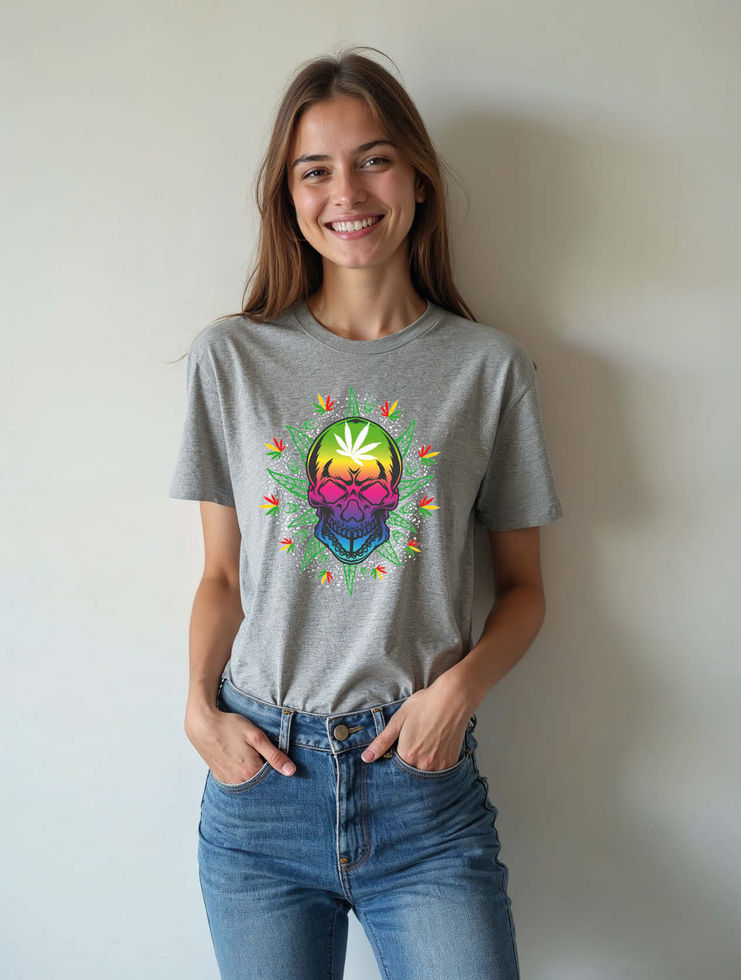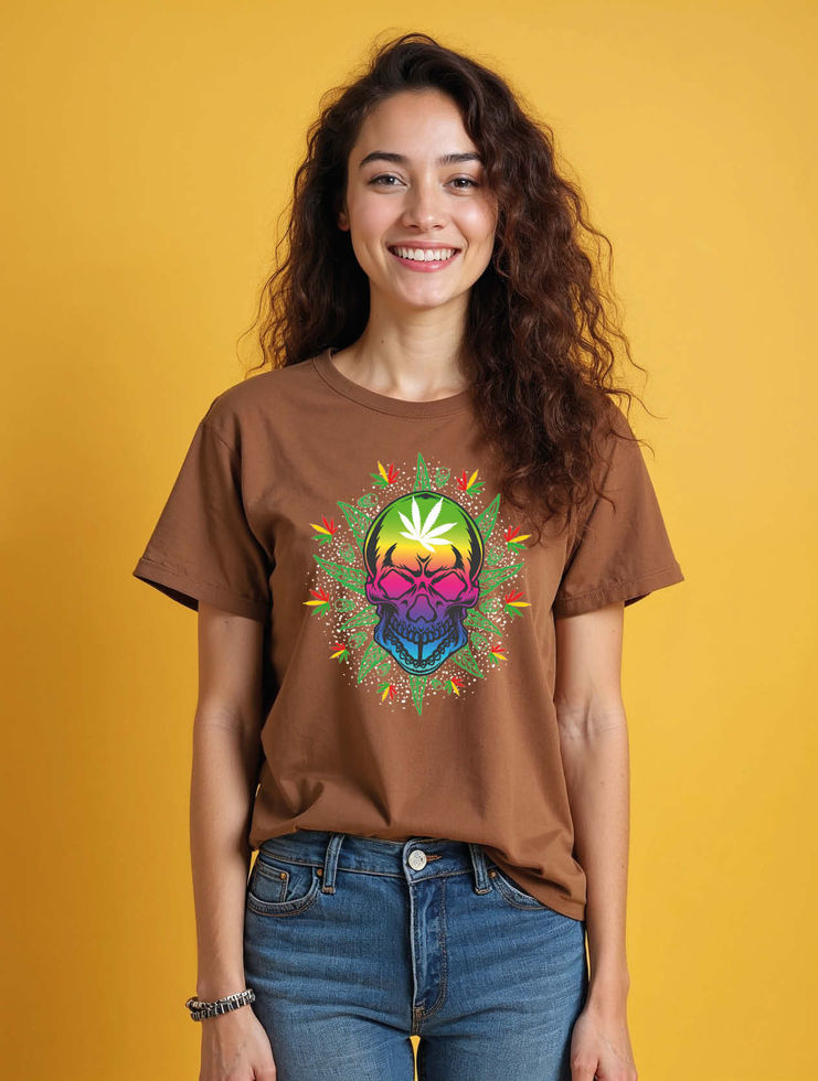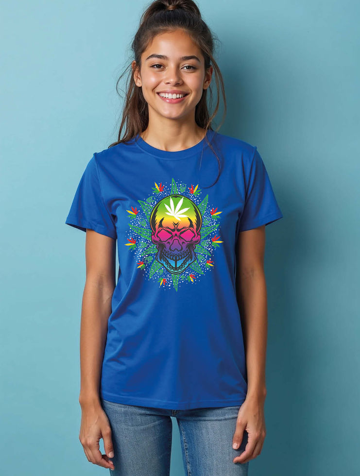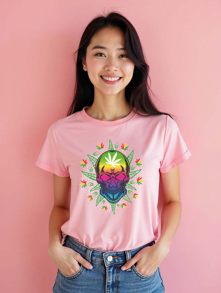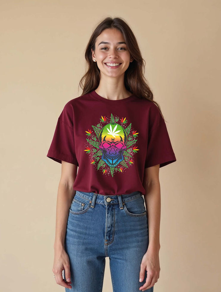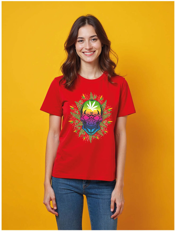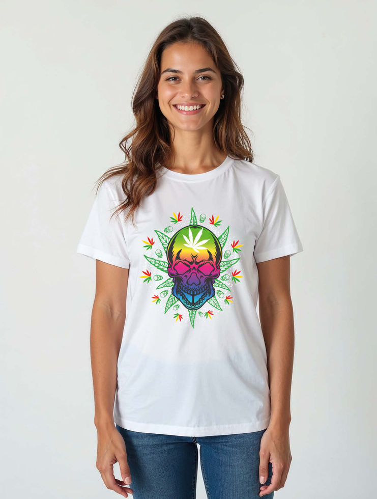 Rainbow Rasta Weed Skull Modern Women’s Printed Graphic Streetwear T-Shirt