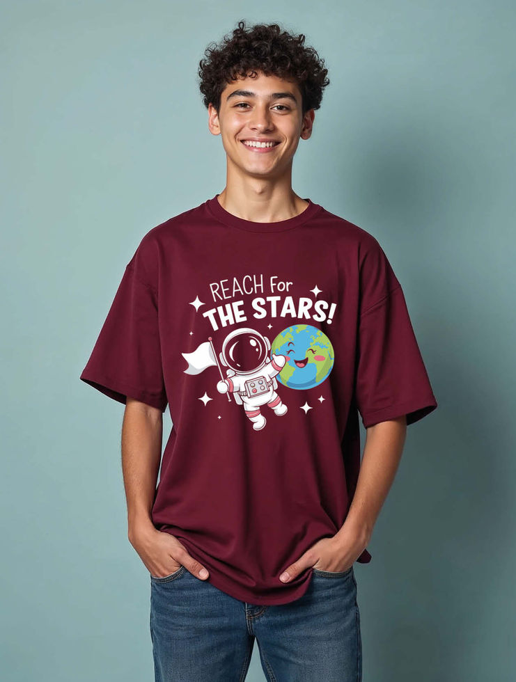 reach for the stars Stylish Unisex Drop Shoulder Oversized T-Shirt