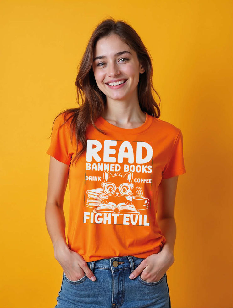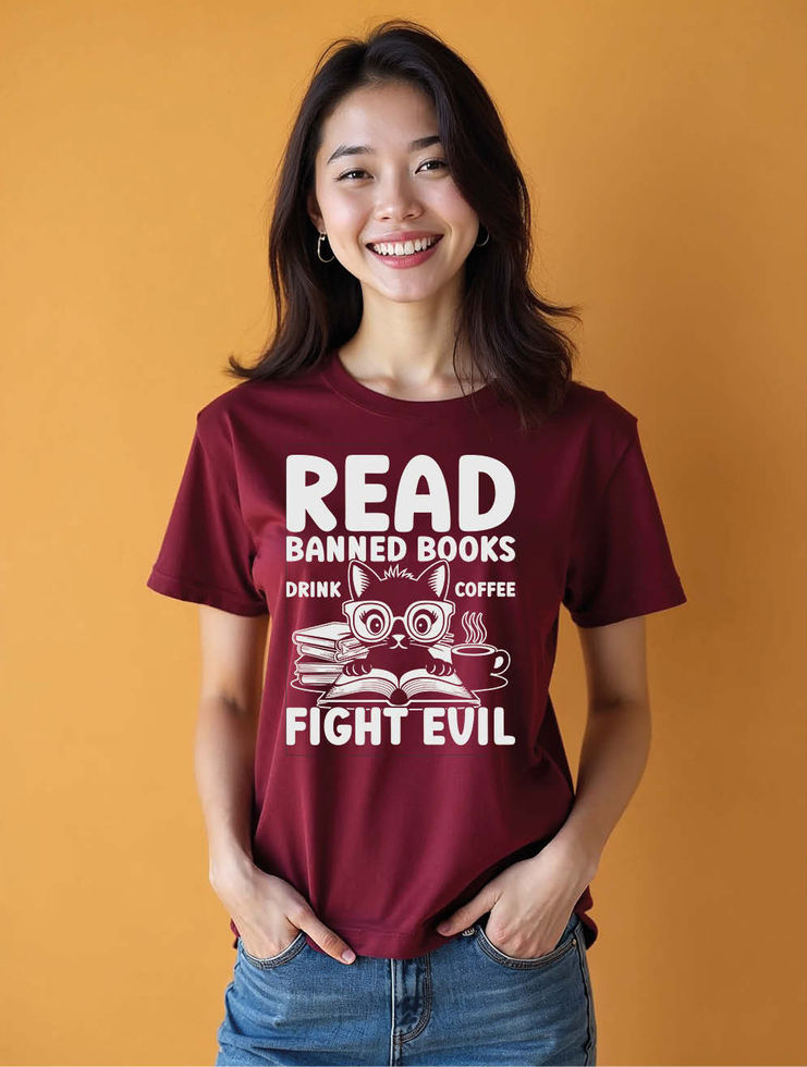 read banned books drink coffee fight evil Chic Women’s Streetwear T-Shirt