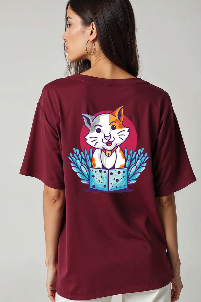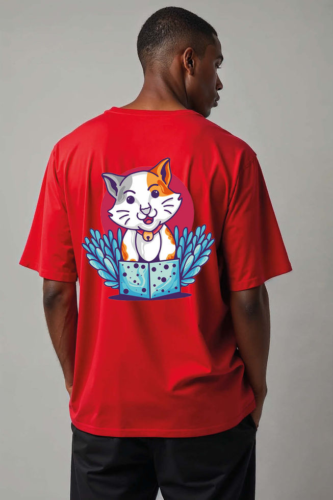 Reading Cat Cartoon Classic Funny Unisex Drop Shoulder Oversized T-Shirt
