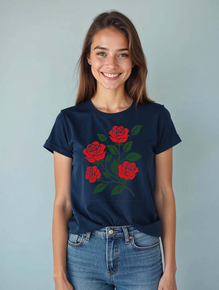 Red Rose Bouquet Casual Women’s Printed Graphic Streetwear T-Shirt