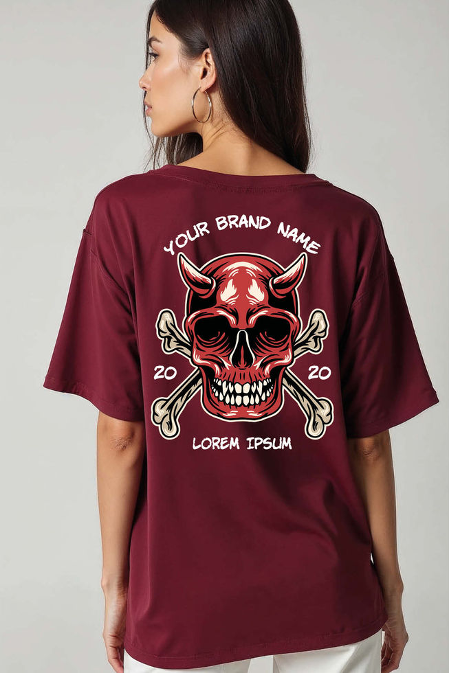 Red Skull With Cross Bone Trendy Unisex Drop Shoulder Oversized T-Shirt