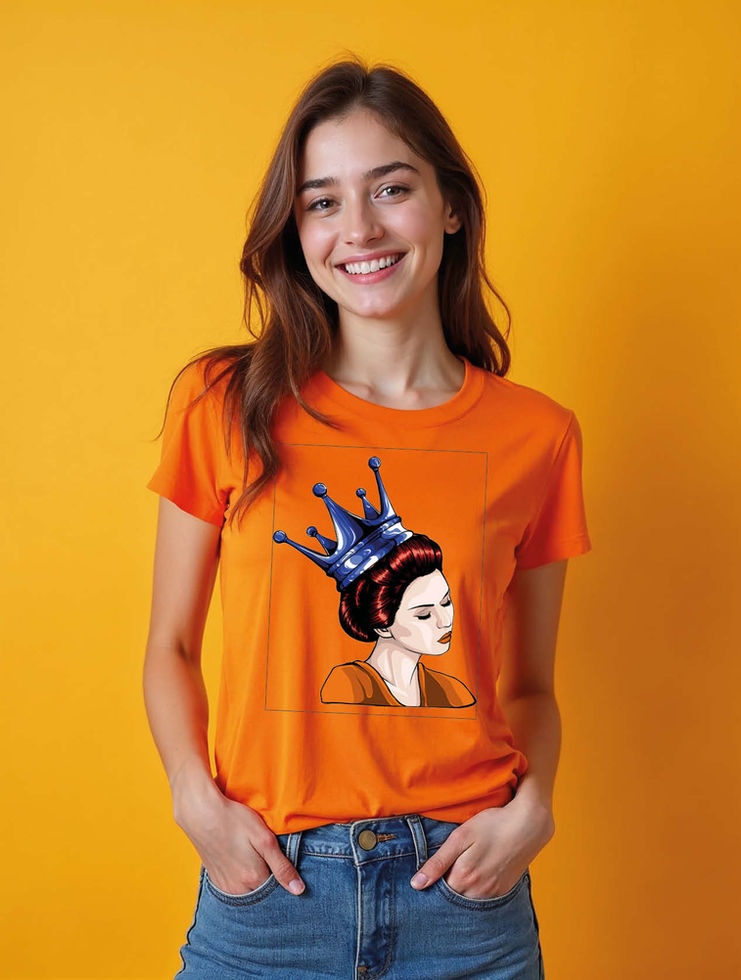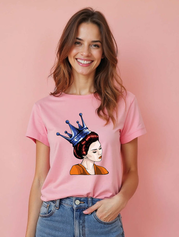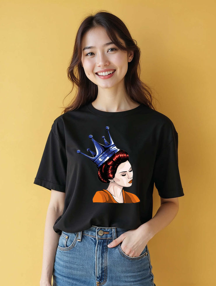 Regal Woman with Blue Crown Trendy Women’s Printed Graphic Streetwear T-Shirt