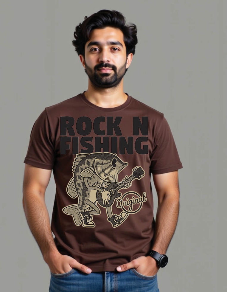 retro cartoon emblem bass fish playing guitar mens printed graphic t shirts