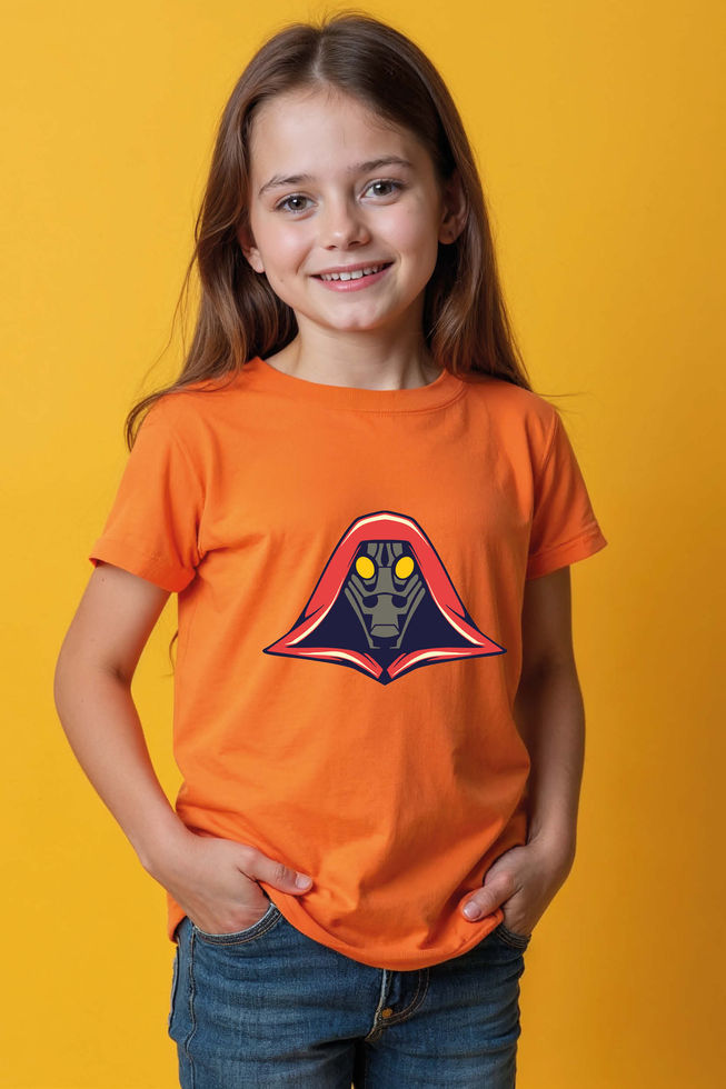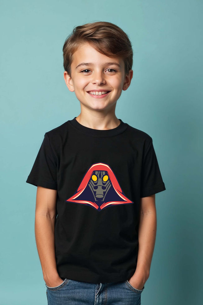 Robot Face in Red Hood T-Shirt Casual Cute Kids Typography T-Shirt – Character