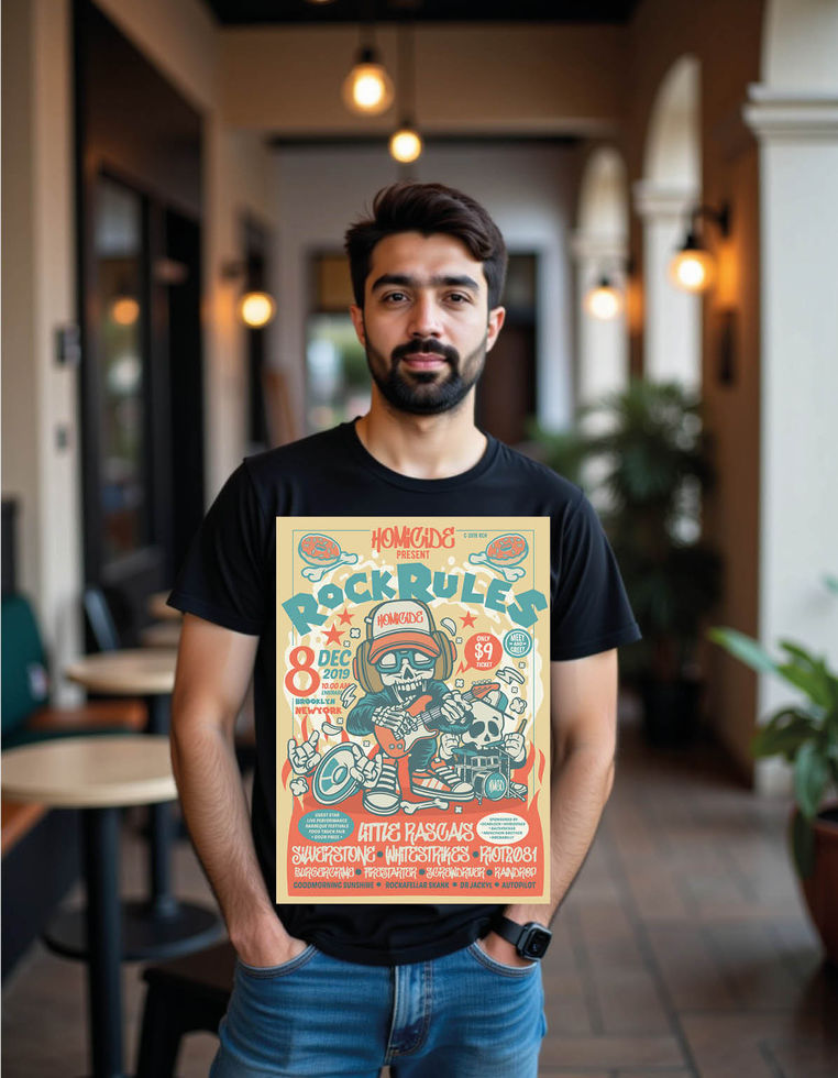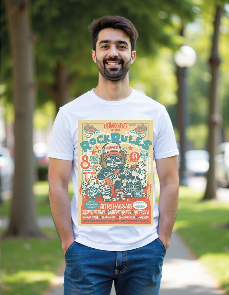 rock rules festival flyer mens printed graphic t shirt