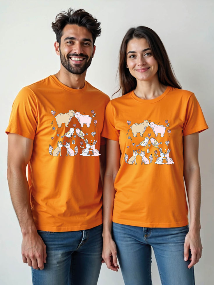 Try the premium quality pre-shrunk Couple T shirts.