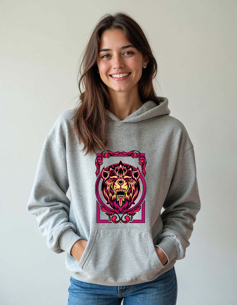 Royal Pride Ornate Framed Lion Premium Unisex Printed Graphic Hoodies
