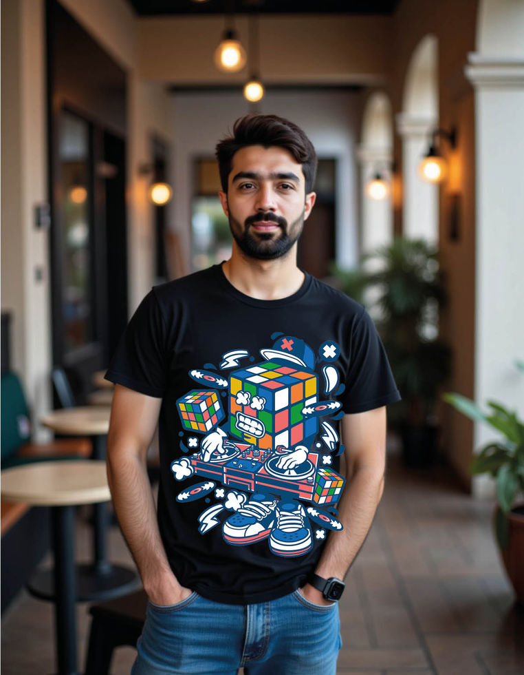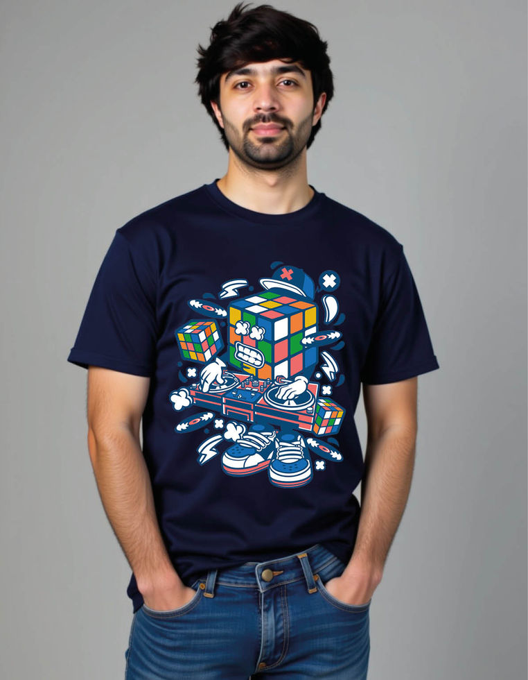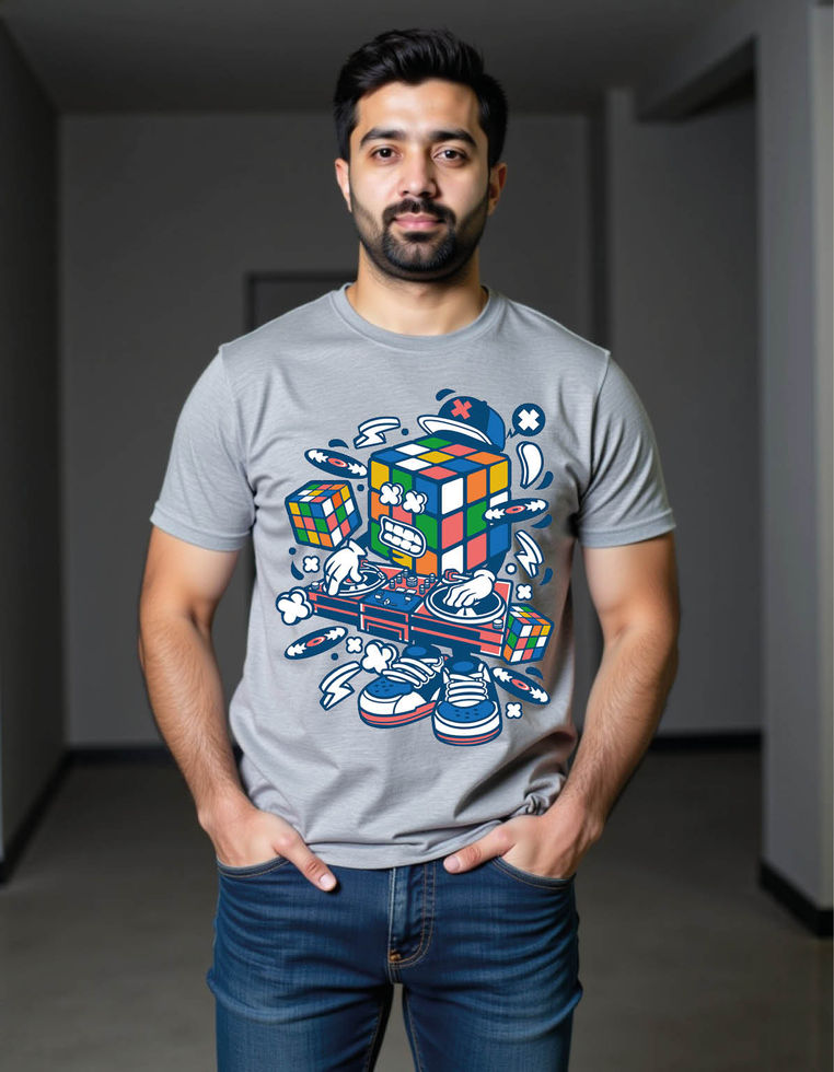 rubix cube disk jockey cartoon mens printed graphic t shirt