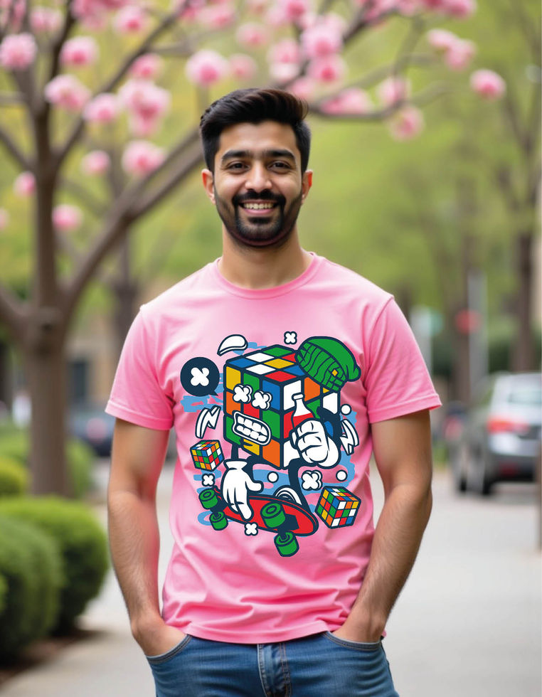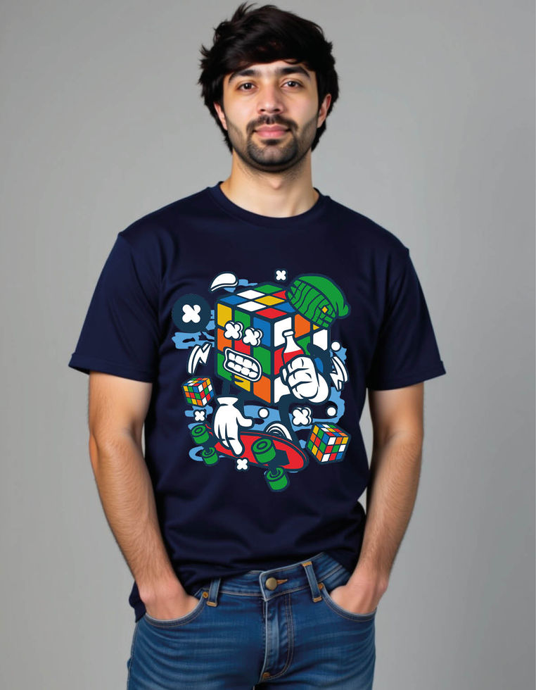 rubix cube skater cartoon mens printed graphic t shirt