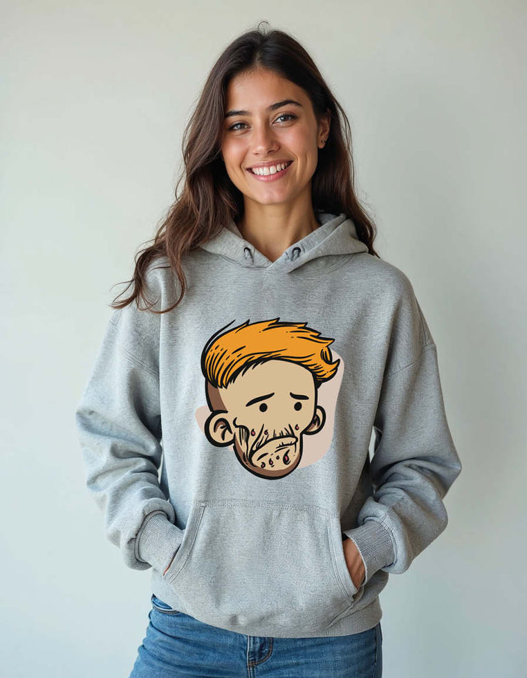 Sad Bearded Boy Cartoon Face Unisex Printed Graphic Hoodies For Men & Women