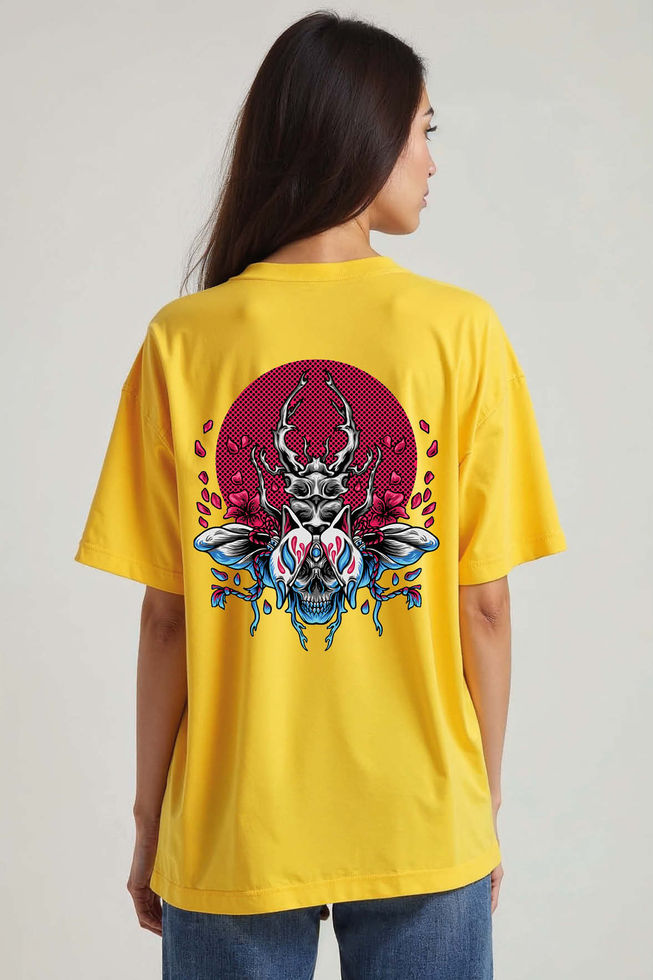 Samurai Stag Beetle Skull Casual Vintage Unisex Drop Shoulder Oversized T-Shirt