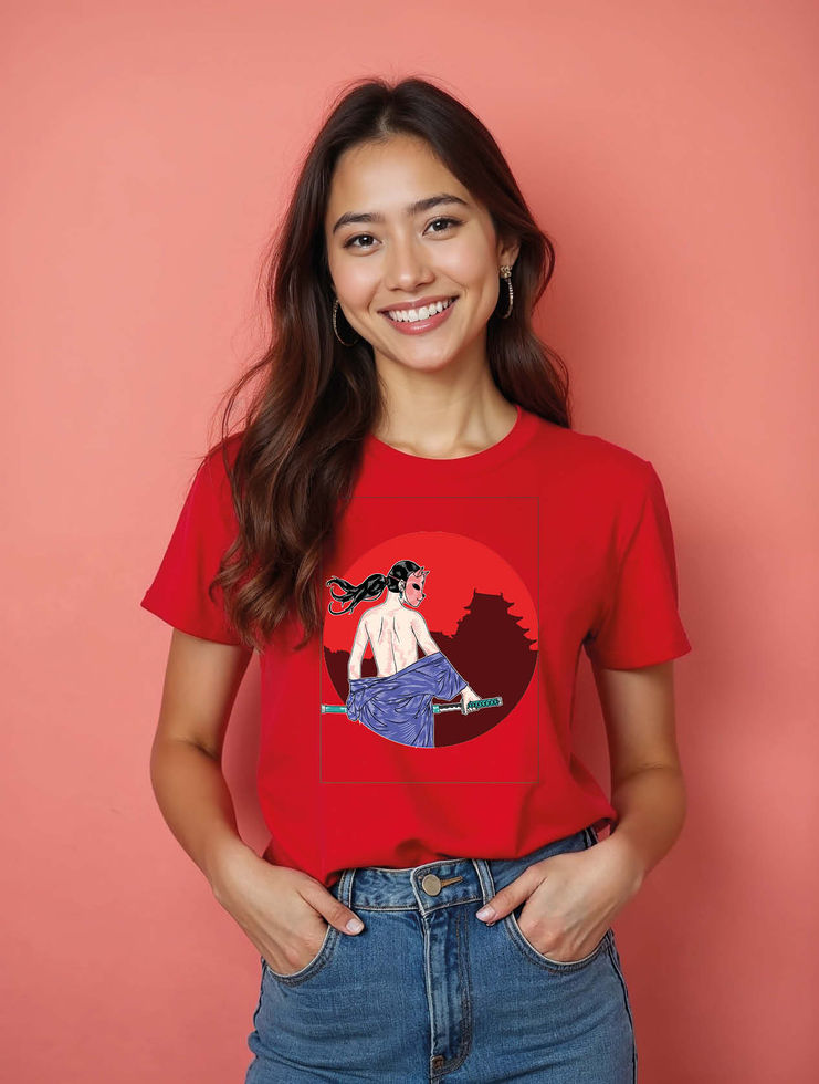 Samurai Sunset Urban Women’s Printed Graphic T-Shirt – Hot Deal