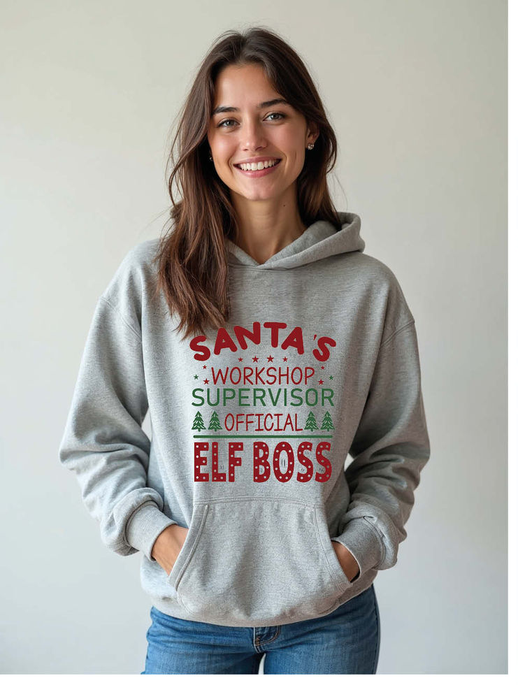 santa's workshop supervisor offical elf boss Woman's Printed Graphic Hoodies