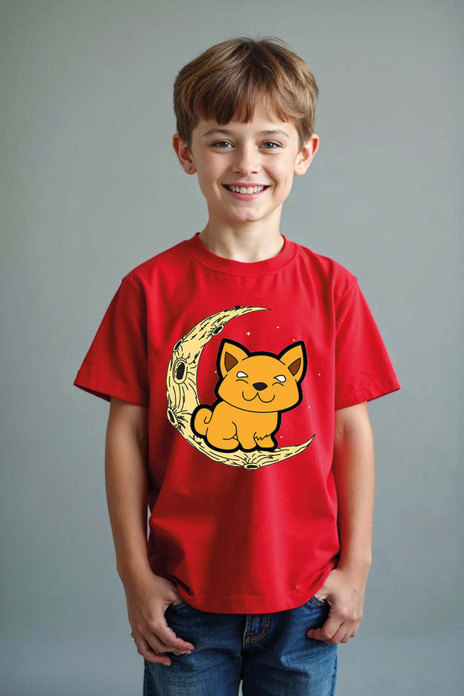 Shiba Inu Moon T-Shirt Premium Typography Print T-Shirt for Kids – Space Print