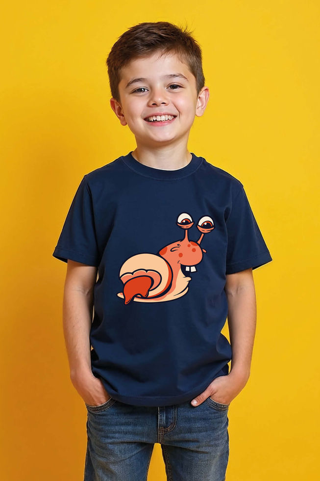 Silly Cartoon Snail with Big Eyes T-Shirt Premium Trendy Printed Tee for Kids