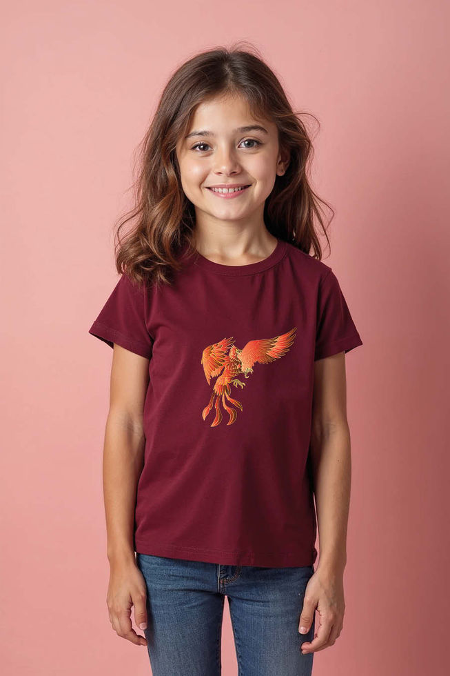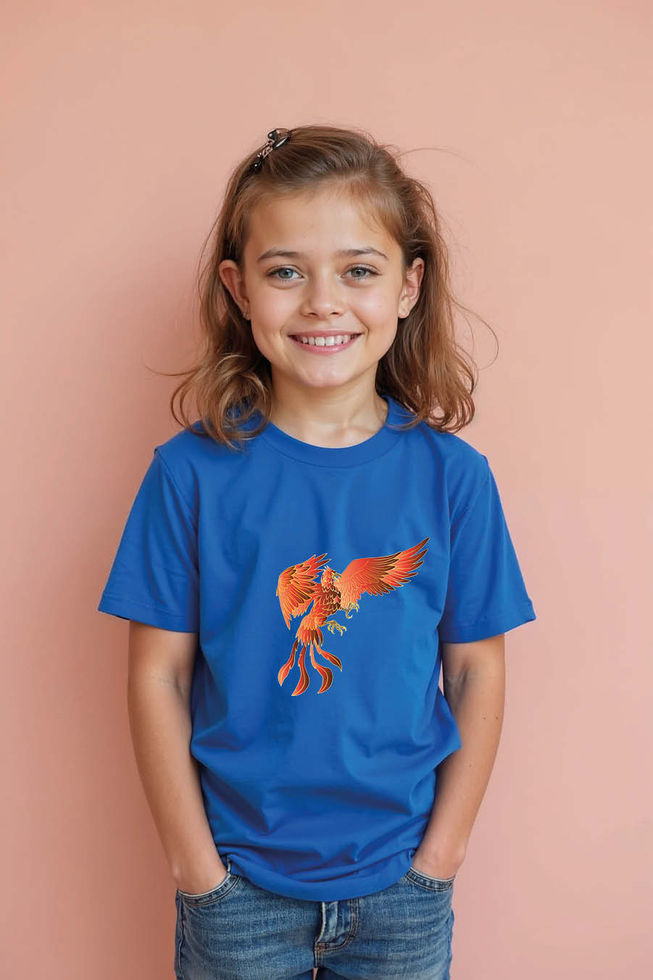 Single Fire Phoenix T-Shirt Playful Unisex Kids Graphic Tee – Drawing Print