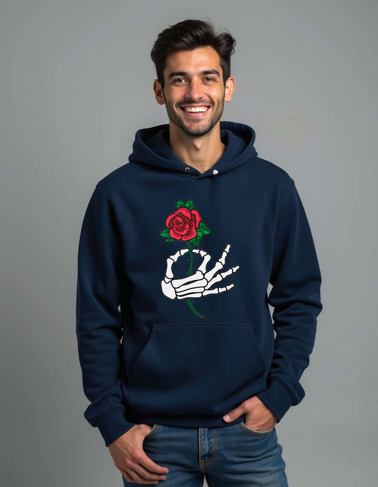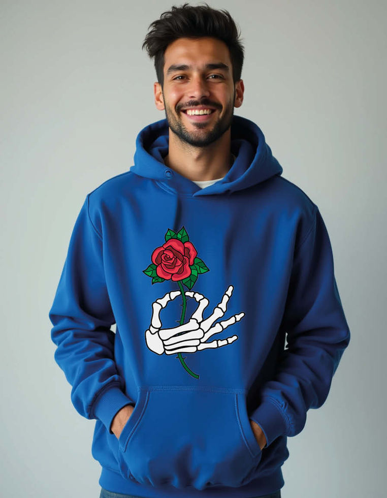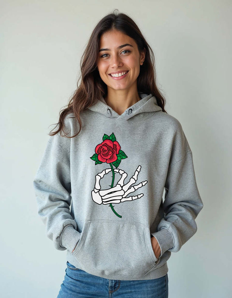 Skeleton Hand Holding Red Rose Unisex Graphic Printed Hoodies for mens & womens