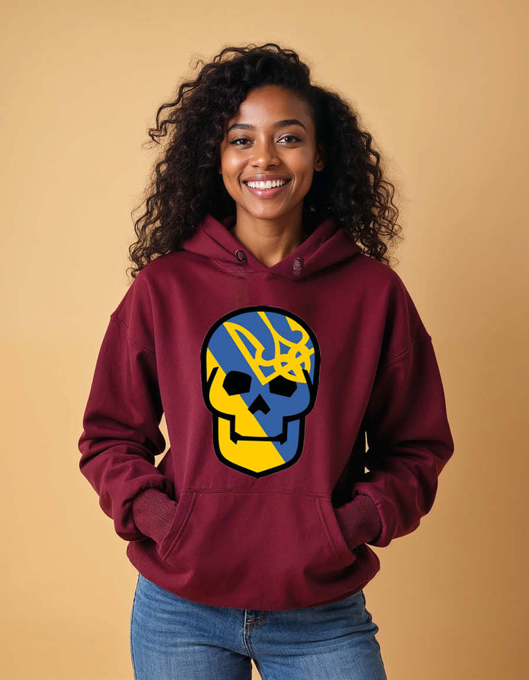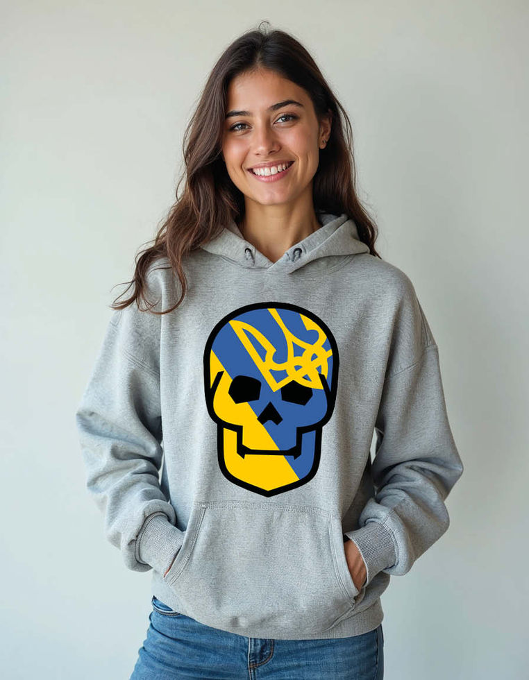 skull and ukranian flags grunge vintage Unisex Graphic Printed Hoodies