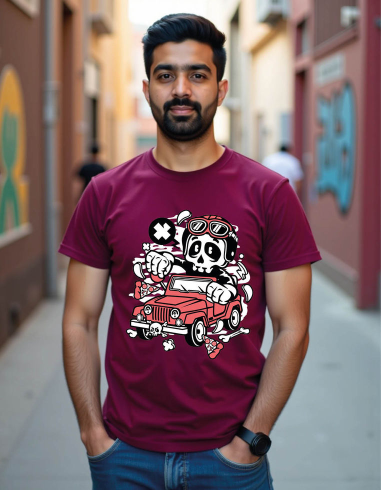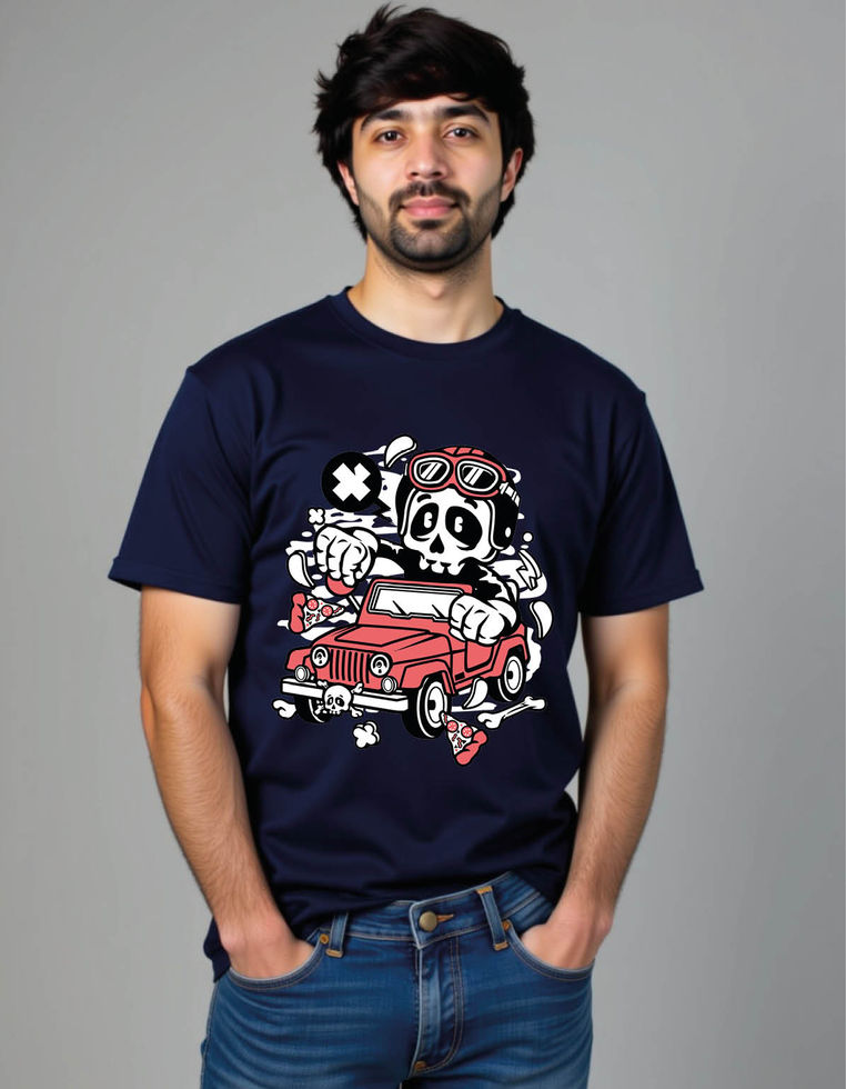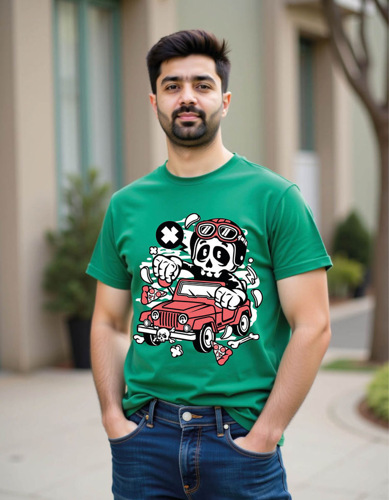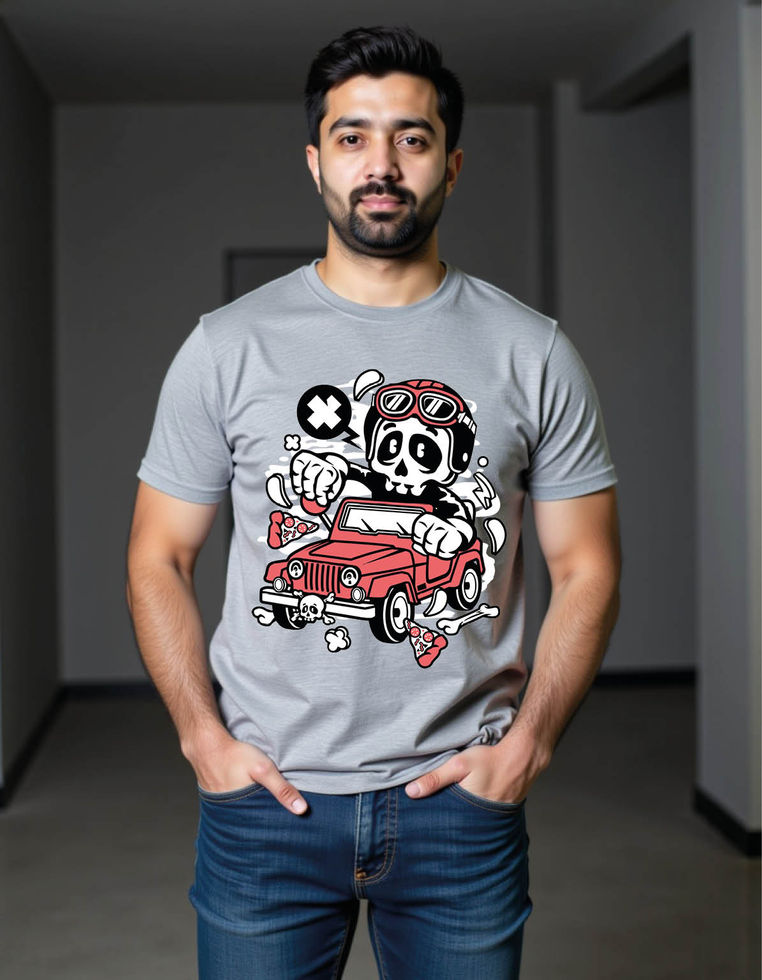 skull jeep cartoon mens printed graphic t shirt