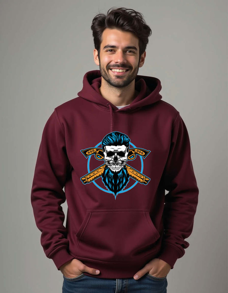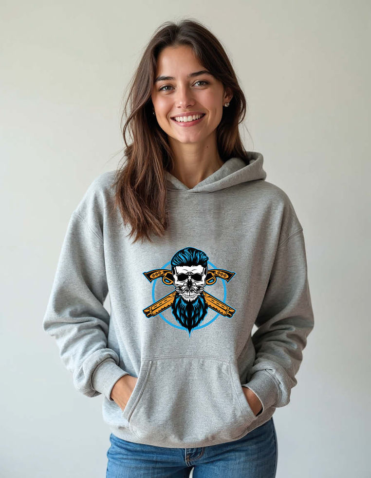 Skull with Crossed Hatchets Classic Unisex Printed Graphic Hoodie For Men, Women