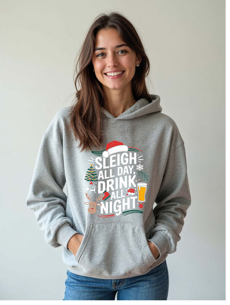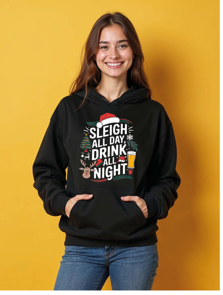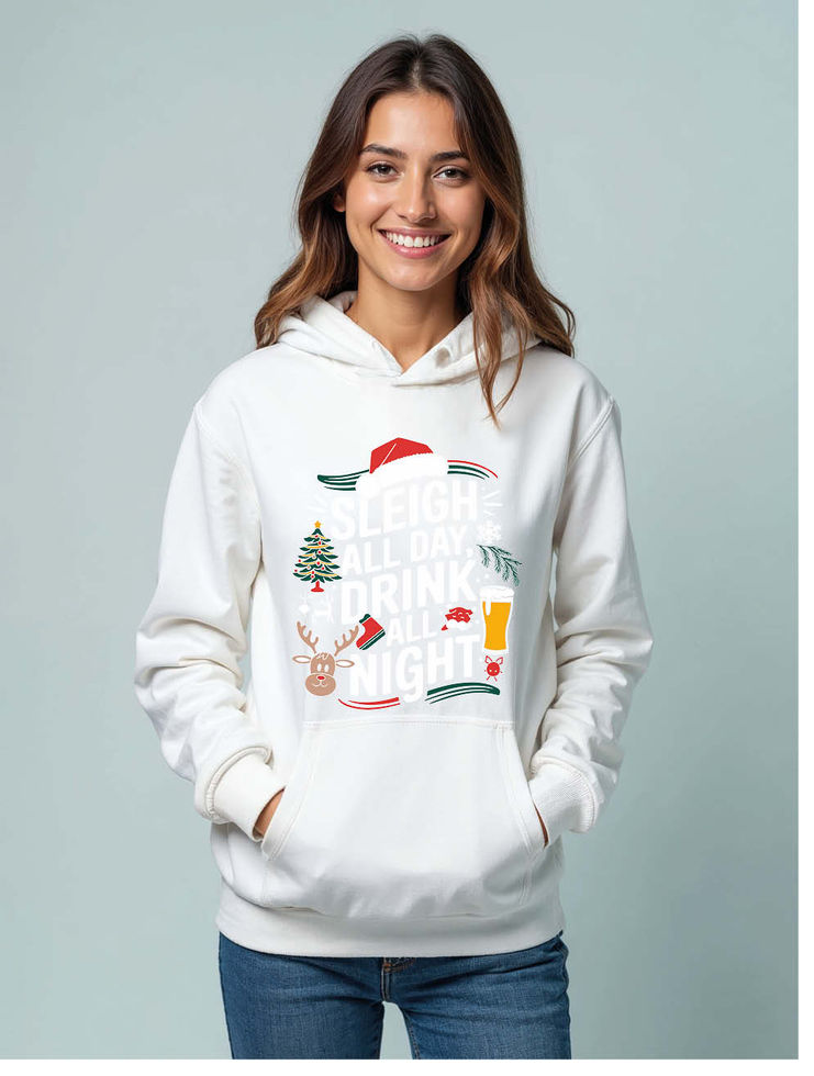 sleigh all day drink all night Urban Women’s Typography Hoodies – Buy Now