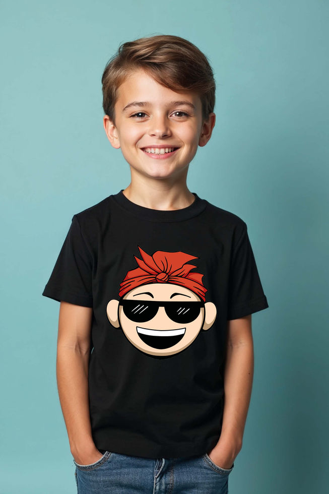 Smiling Face with Sunglasses and Bandana T-Shirt Modern Trendy Printed Tee