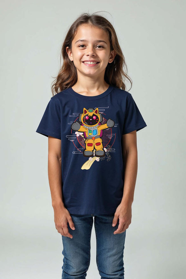 Space Cat Printed T-Shirt for Kids – Cute Astronaut Kitty Graphic Tee