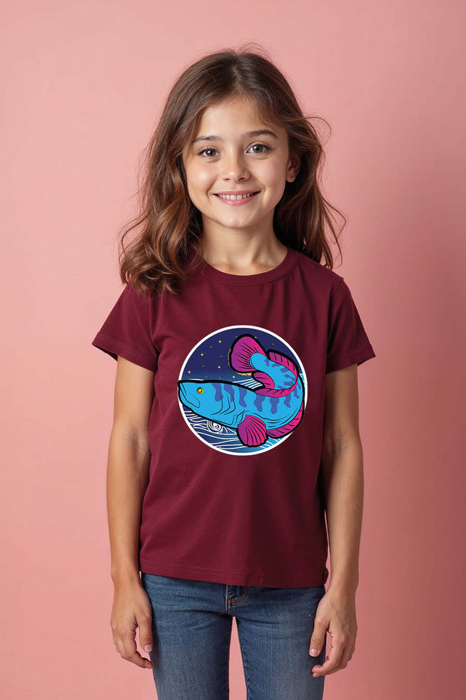 Starry Night Giant Fish Everyday Stylish Kids Graphic T-Shirt – Typography Print
