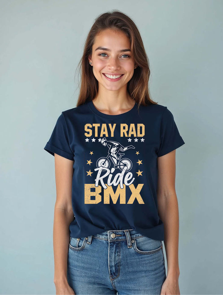 stay rad ride bmx Stylish Women’s Typography T-Shirt – Shop Now