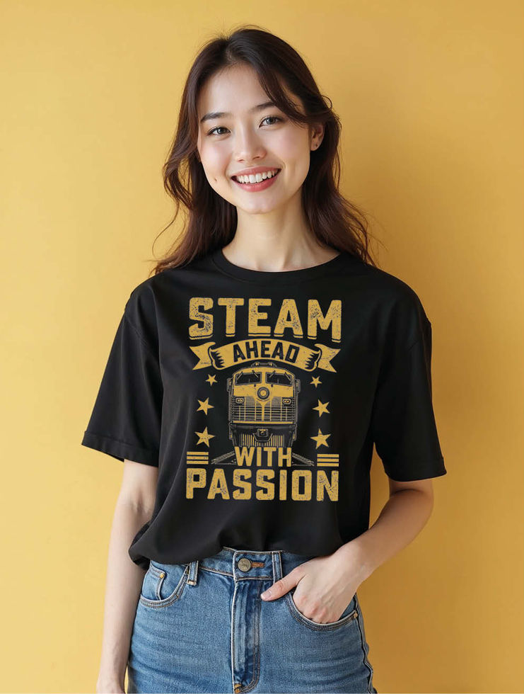 Steam ahead with passion Cool Women’s Typography T-Shirt – Hot Deal