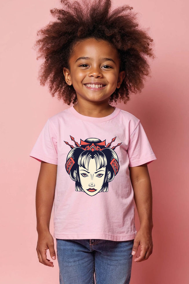 Stern Geisha Head Comfortable Unisex Kids Graphic Tee – Superhero Print Design