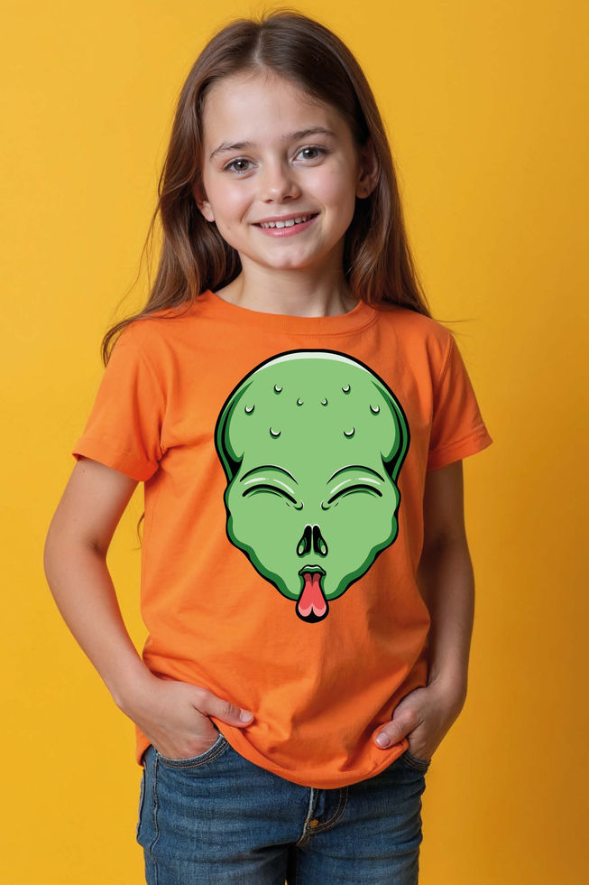 Sticking Tongue Out Alien Head Kids T-Shirt Cool Trendy Printed Tee for Kids