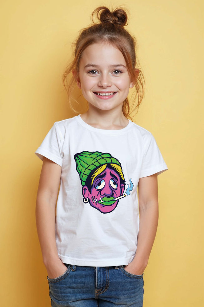 Street Art Style Smoker Face Kids T-Shirt Stylish Cool Cartoon Kids T-Shirt