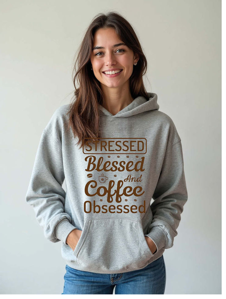 stressed blessed and coffee obsessed Woman's Printed Graphic Stylish Hoodies
