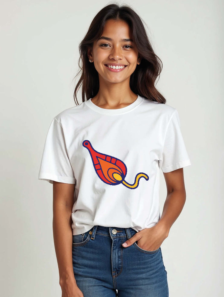 Stylized Flame or Leaf Trendy Women’s Typography T-Shirt – Discount Offer