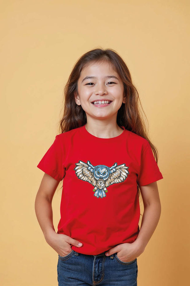 Stylized Flying Owl Cute Cartoon Printed T-Shirt for Boys & Girls