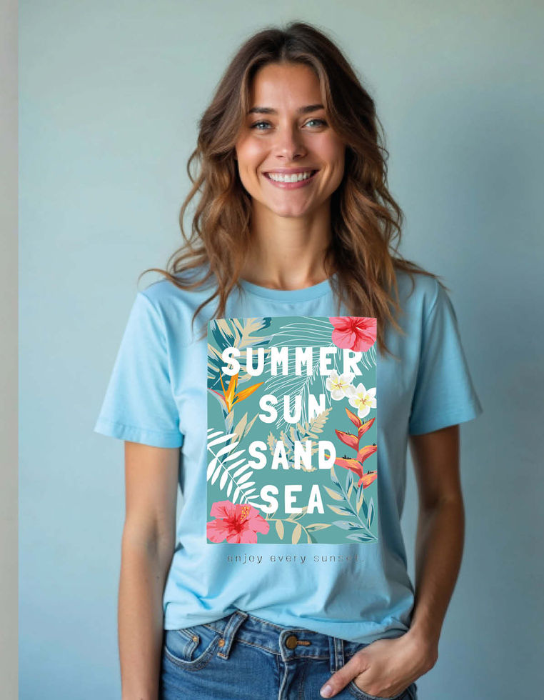 Summer Sun Sand Sea Printed T-Shirt for All age