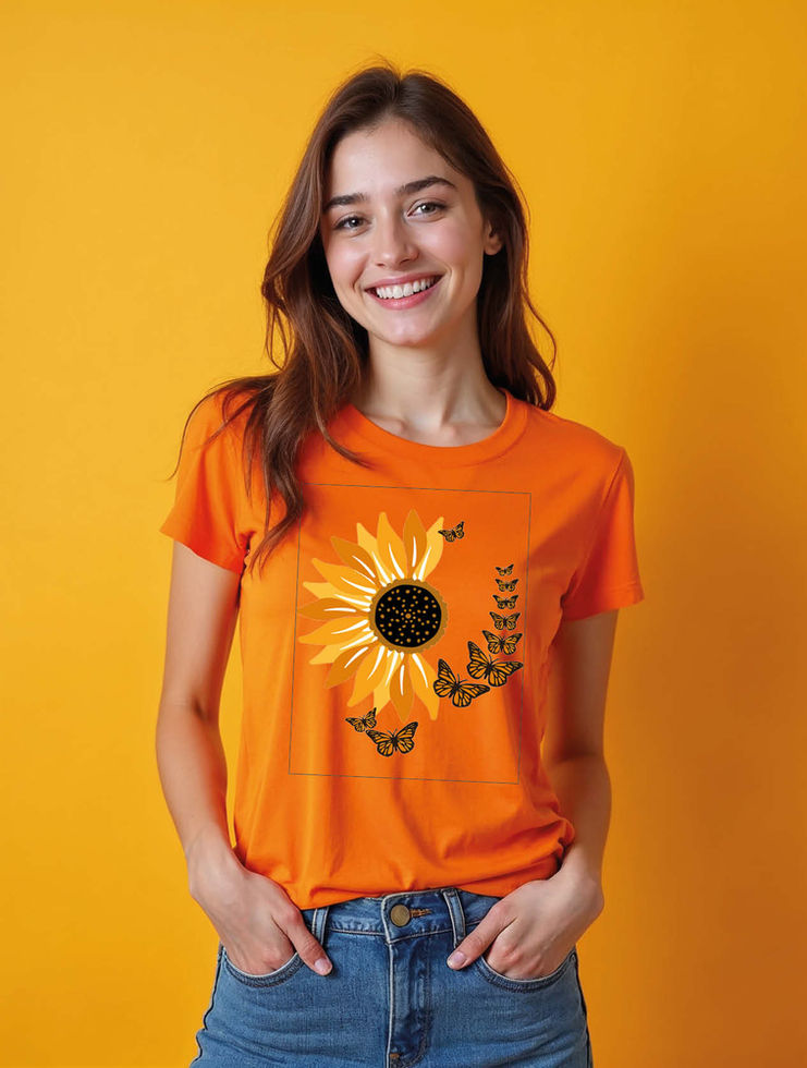 Sunflower and Monarch Butterfly Stylish Women’s Printed Graphic Streetwear Tees
