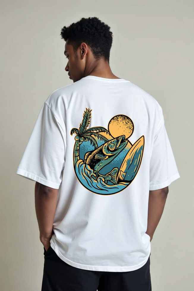 Surf Fishing Beach Scene Urban Unisex Oversized Drop Shoulder T-Shirt