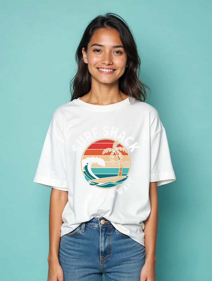 surf shack catch the waves Trendy Unisex Drop Shoulder Oversized T-Shirt