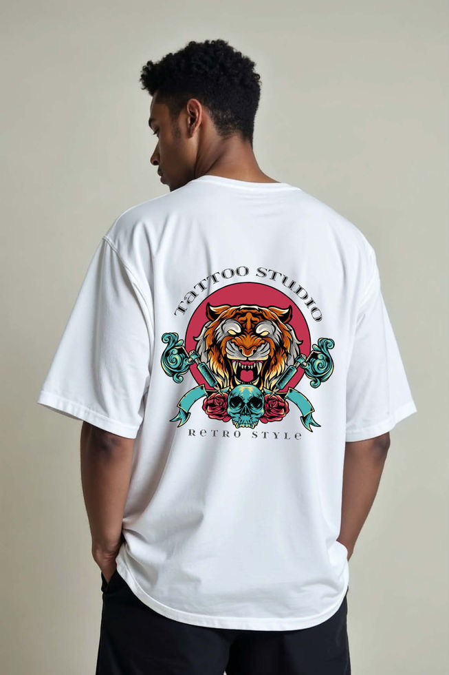 tattoo studio retro style stylish Unisex Oversized Drop Shoulder T-Shirt