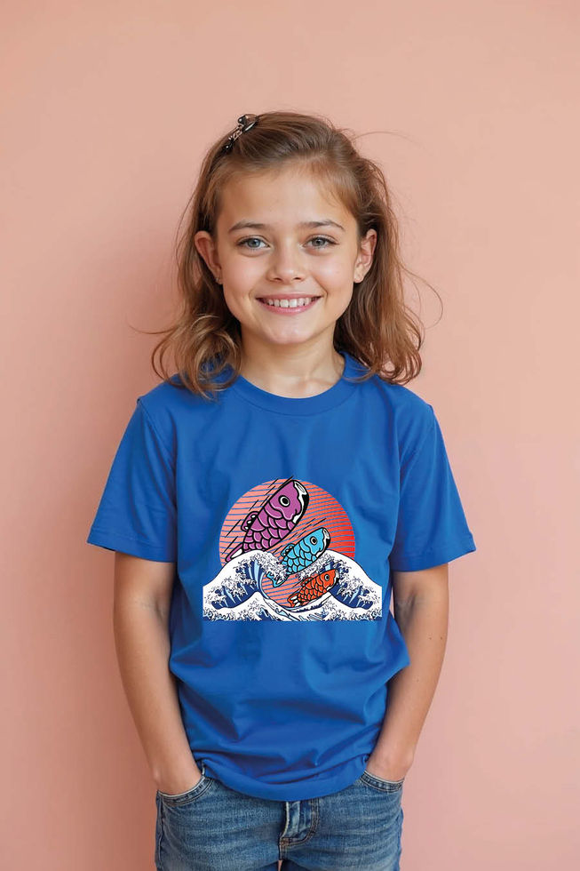 Three Koinobori Sunset Wave Colorful Typography Print T-Shirt for Kids – Artwork
