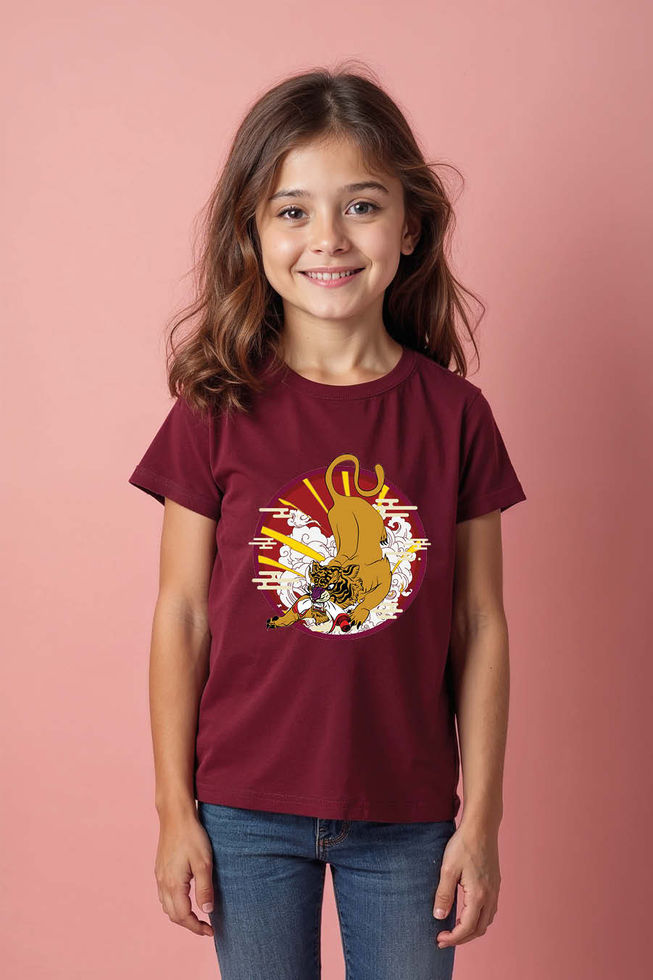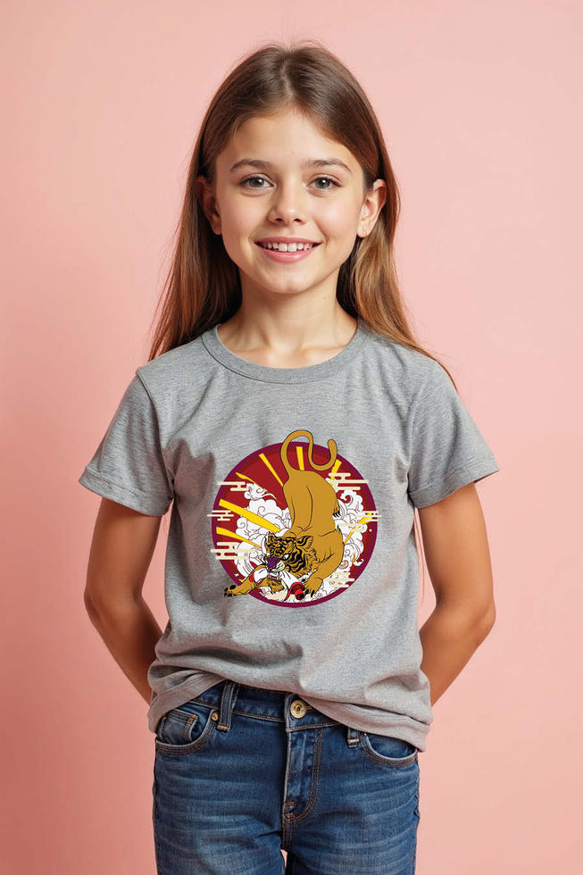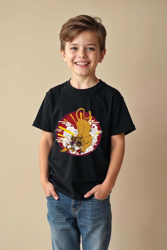 Tiger and Rising Sun Printed T-Shirt for Kids – Bold Japanese Art Style Tee