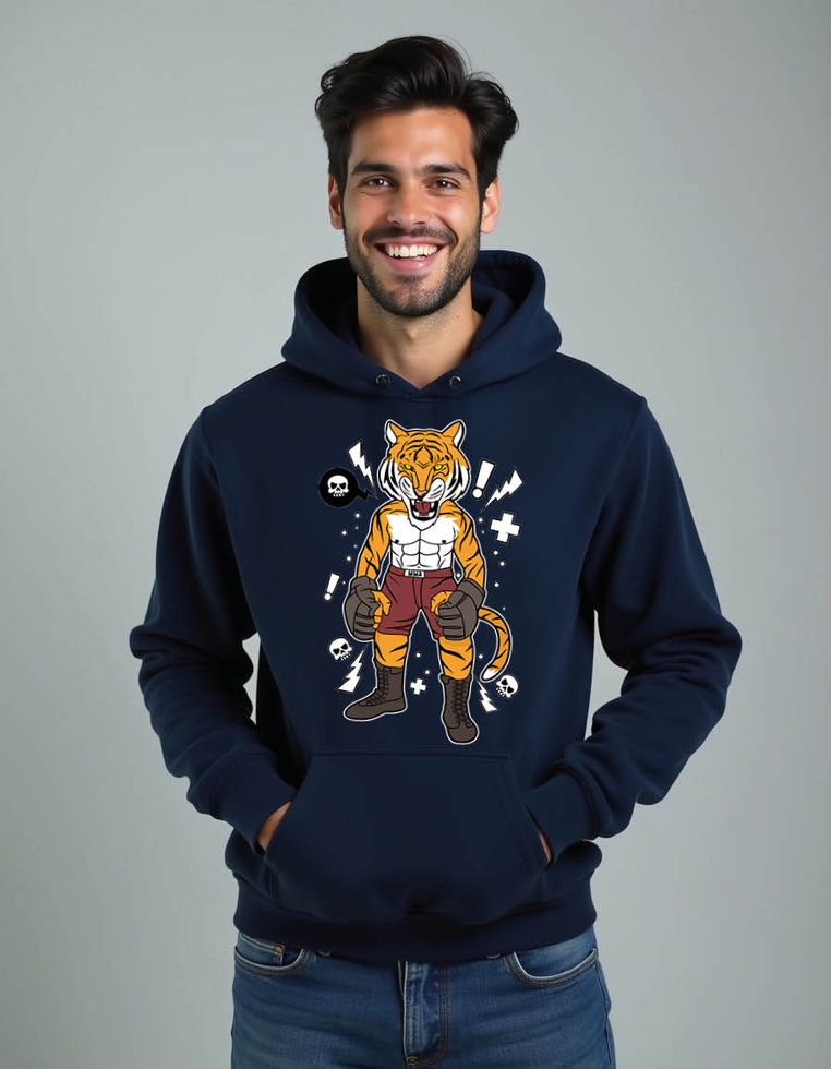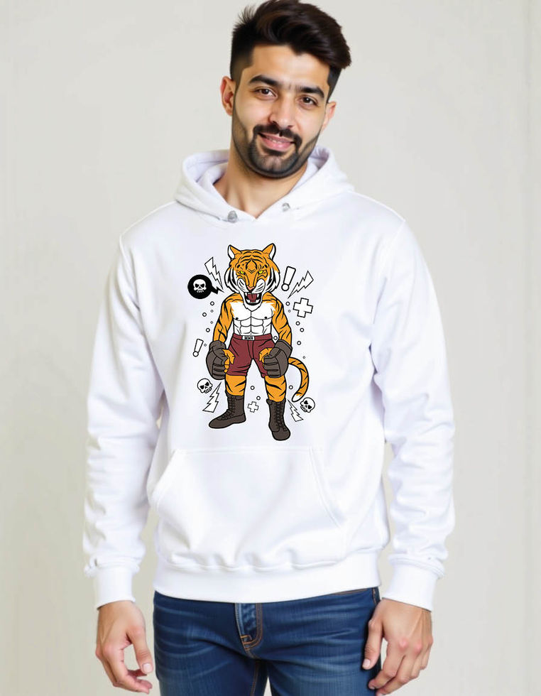 tiger fighter Casual Winter Streetwear Hoodie for Men – Warm Winter Outfit | Big