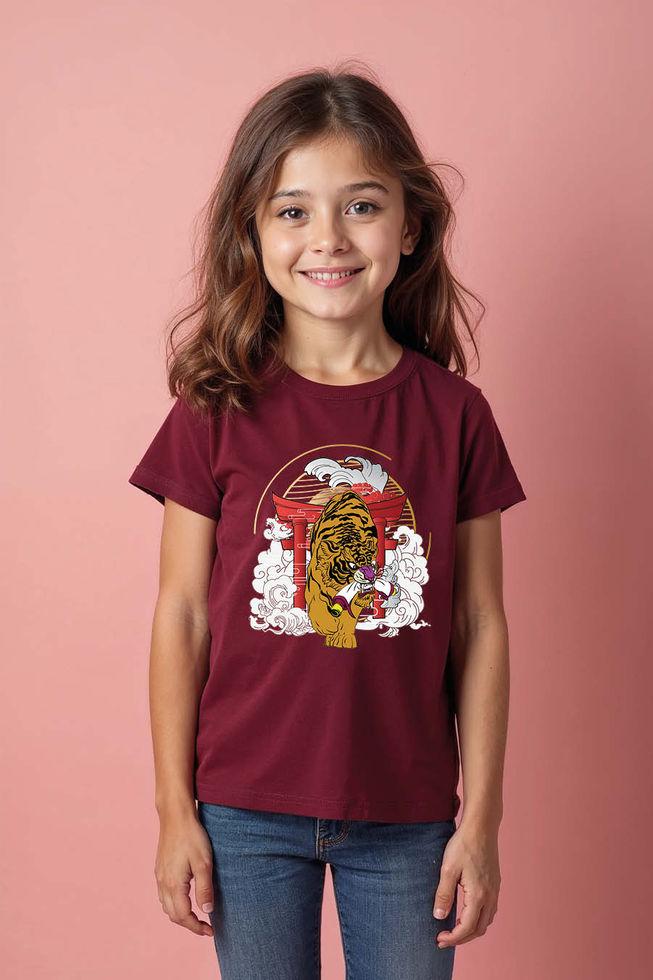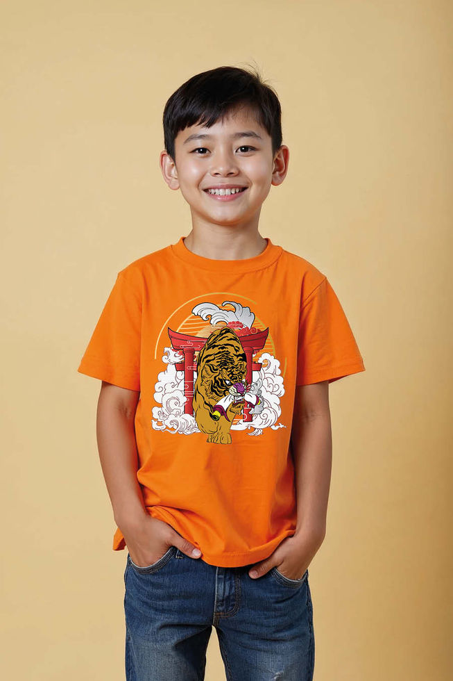 Torii Gate Tiger Trendy Trendy Printed Tee for Kids – Cartoon Print Design