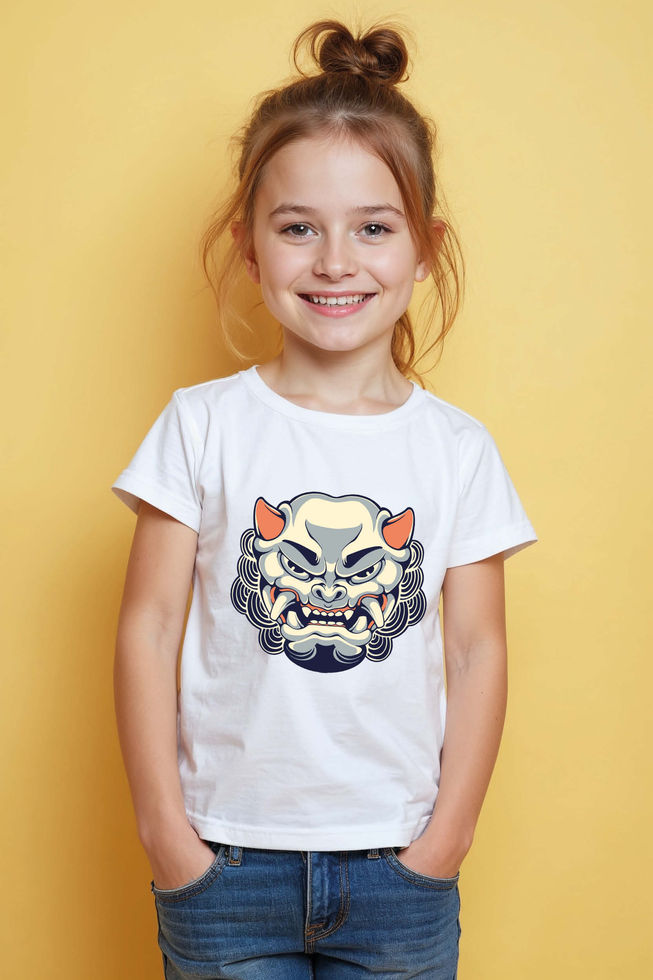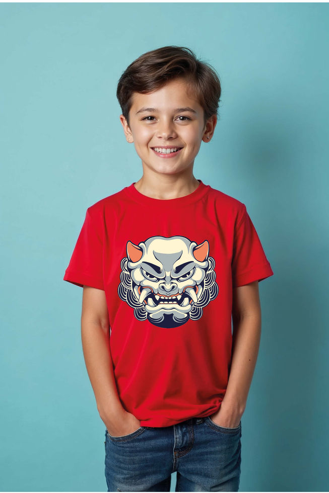 Traditional Foo Dog Guardian Mask Kids T-ShirtCool Cute Kids Typography T-Shirt