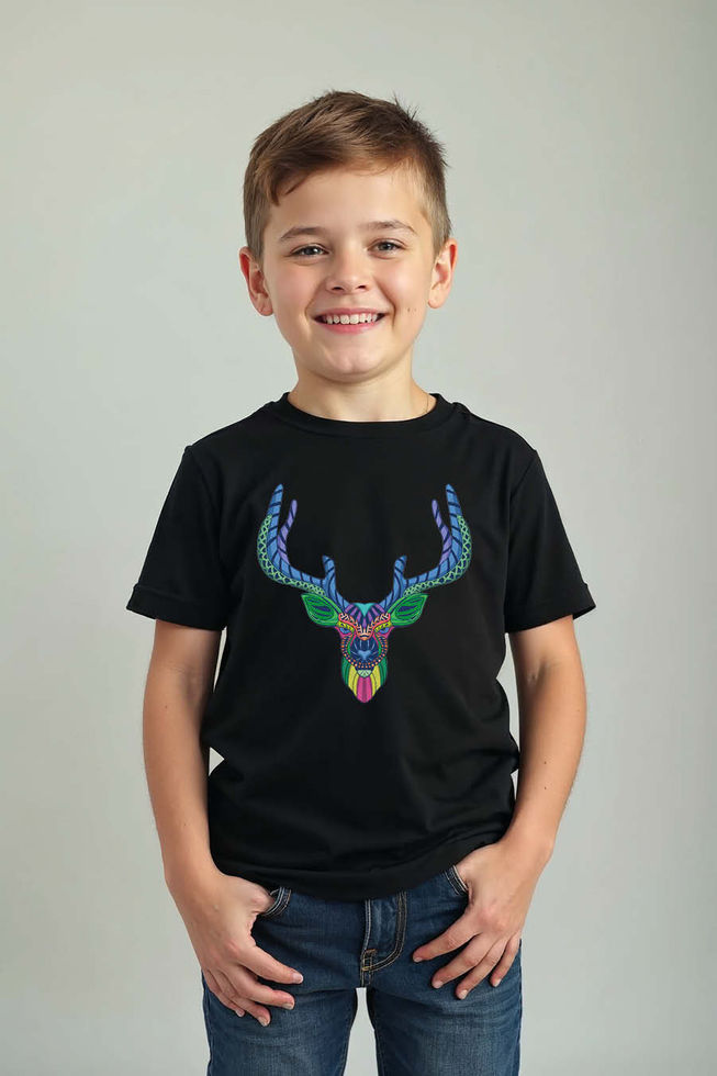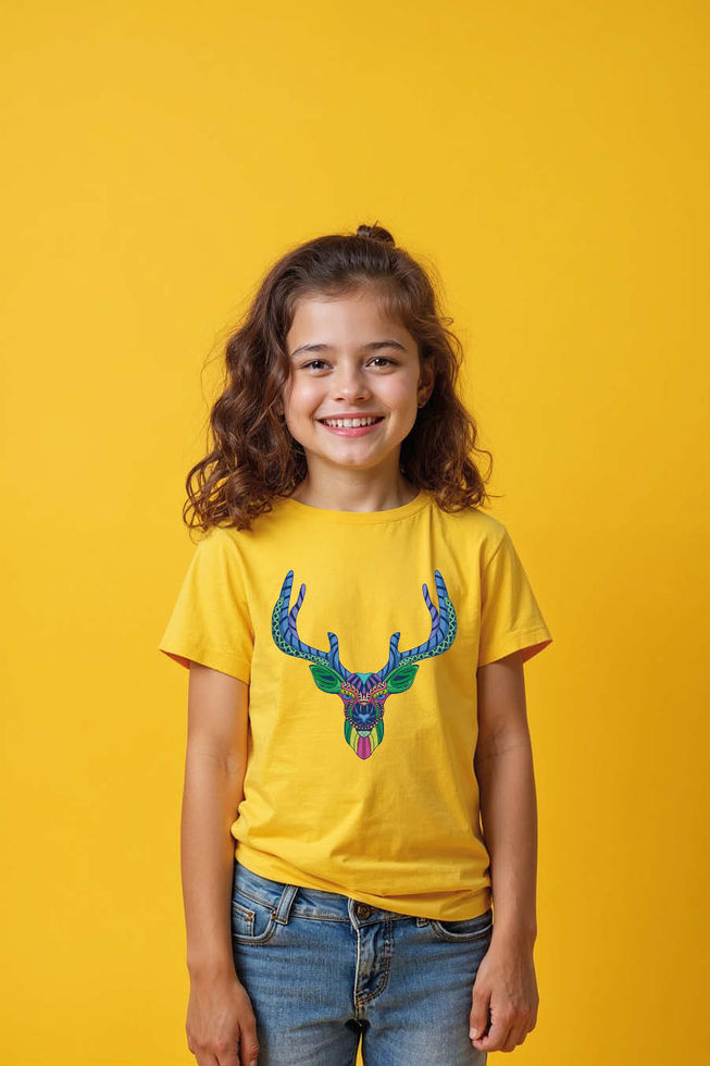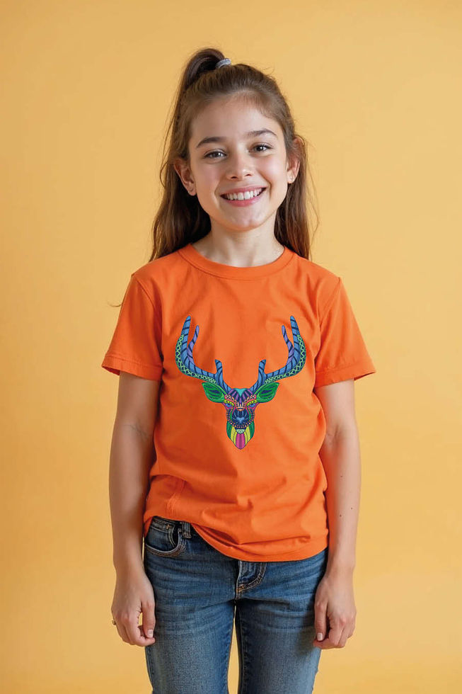 Tribal Deer Head Art T-Shirt for Kids – Colorful Abstract Animal Design, Premium