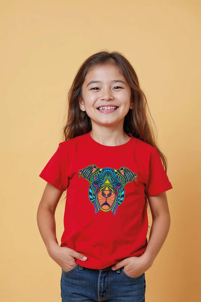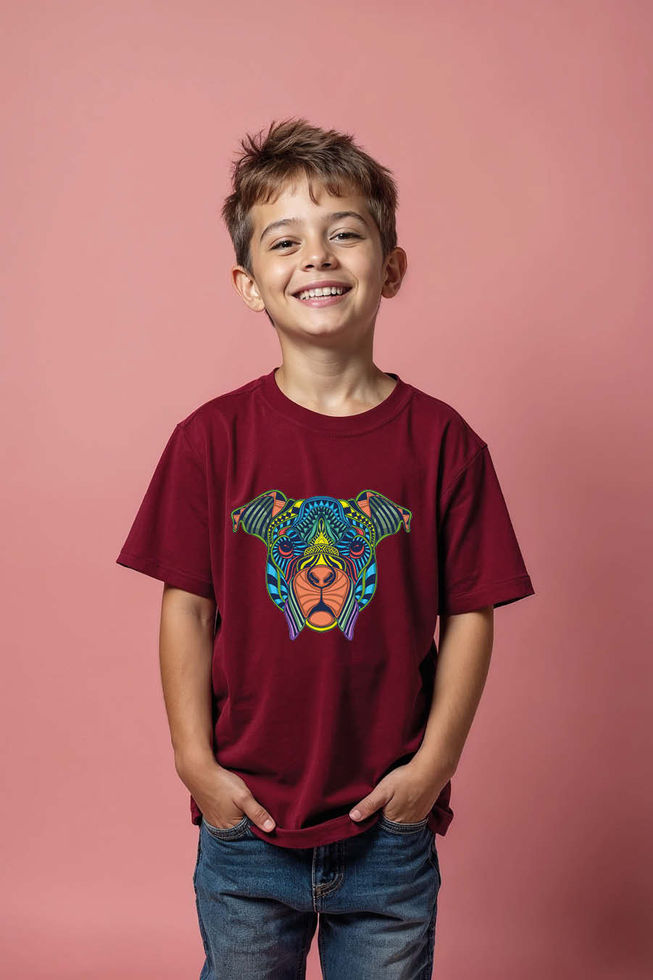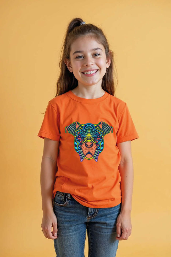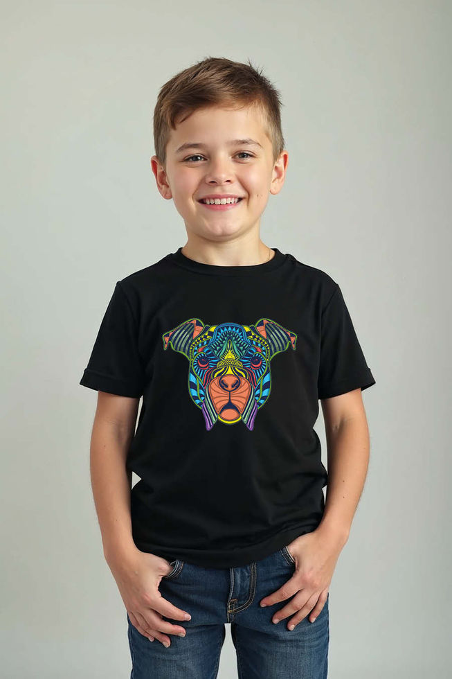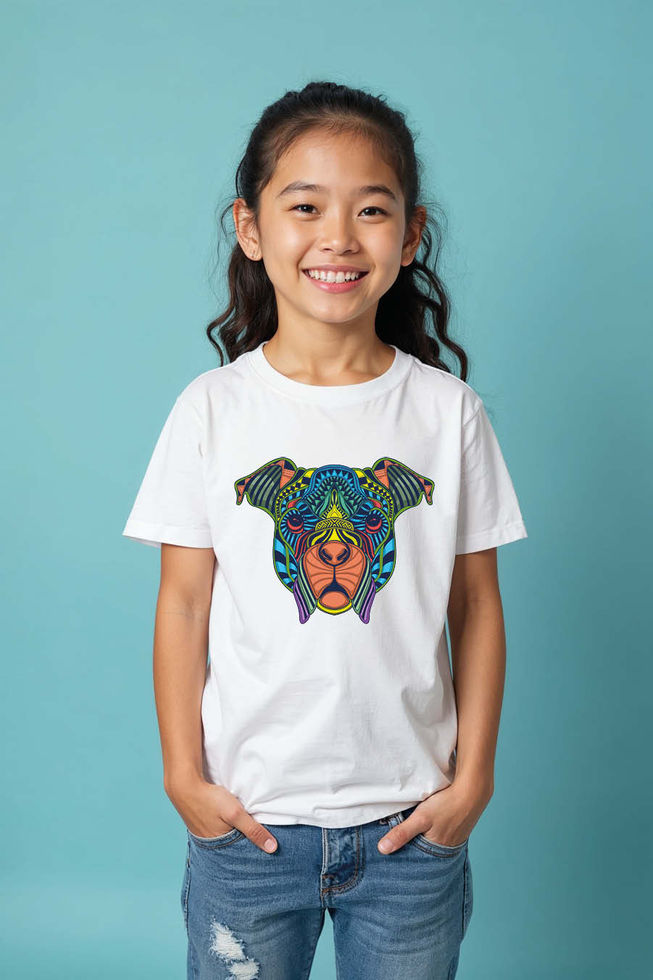 Tribal Dog Face Art T-Shirt for Kids – Colorful Abstract Animal Design, Premium