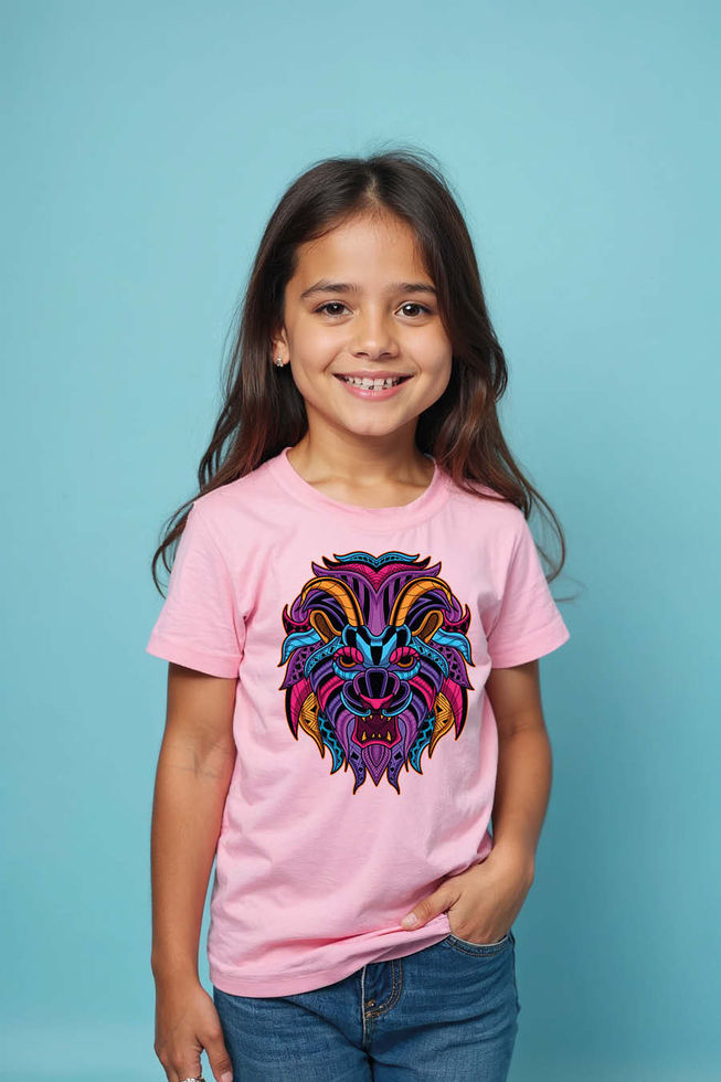 Tribal Lion Face Art T-Shirt for Kids – Colorful Abstract Animal Design, Premium